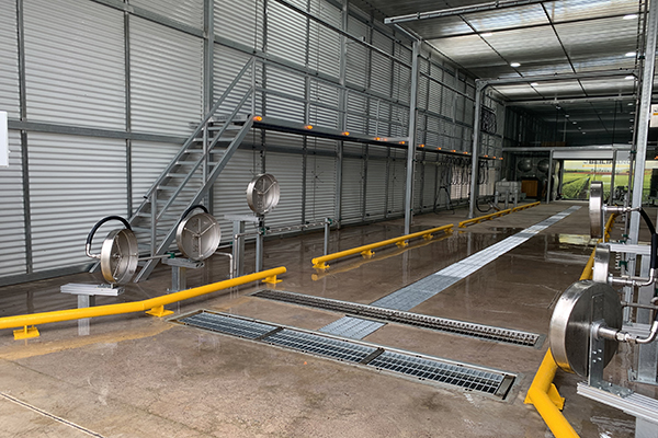 基礎(chǔ)建設(shè)要具備冬季保溫能力以及自動(dòng)排空防凍、防腐蝕功能。清洗車間內(nèi)置防腐鋁塑板或其他耐腐蝕材料,設(shè)置清洗斜坡(5%坡度)便于車廂內(nèi)部排水;烘干車間要做好保溫及密封,保證高效烘干。烘干車間兩側(cè)建耳房,便于熱風(fēng)流通循環(huán)。